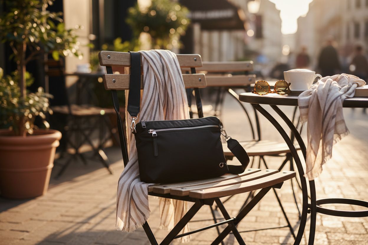 - Zipper closure → Everything stays put on busy sidewalks